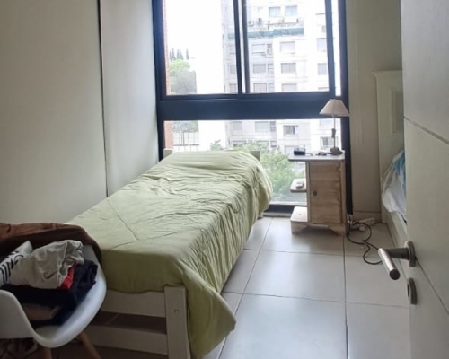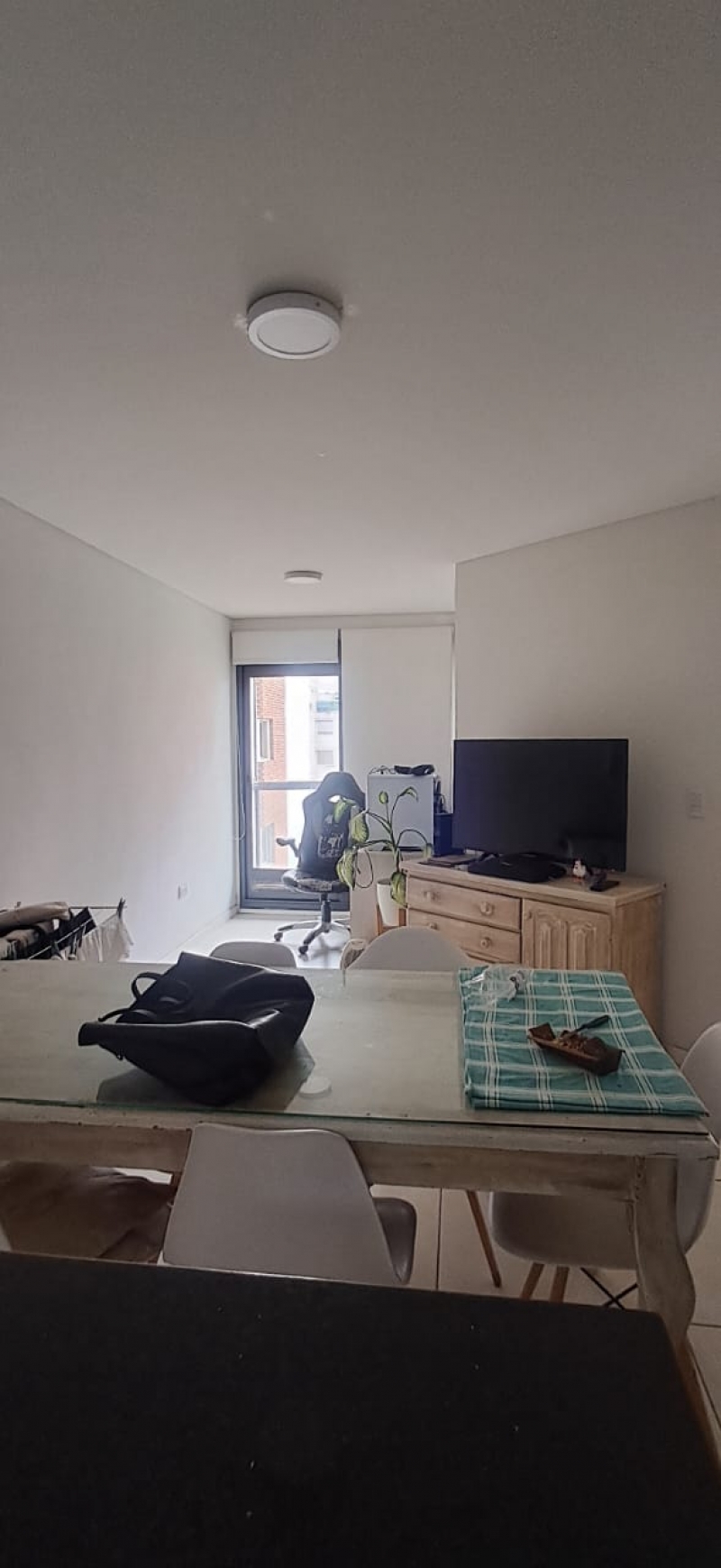 Departamento de un dormitorio contrafrente con balcon. Cocina integrada, luminoso, el edificio cuenta con guardia. Sum con asador.